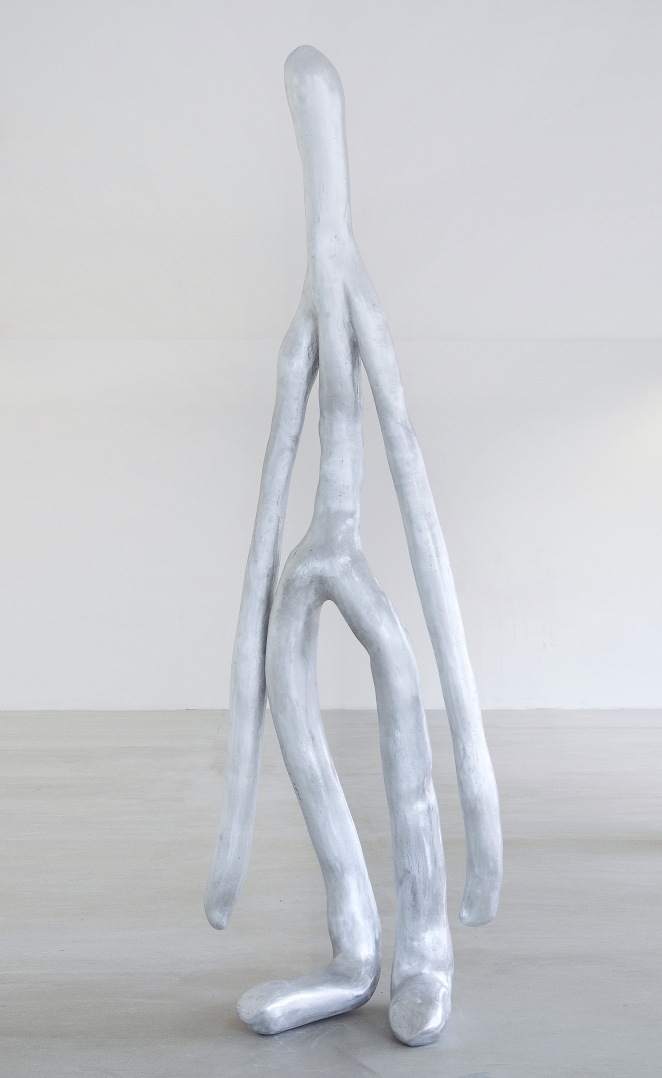 Giants. Graceful, humble giants. Barbara's Giants, figures finally physically manifested in cast aluminium, after a long happy life on the pages of Barbara's books and 3D animations of her moving image works, silent, yet truly eloquent. Unknown. Untouched. They seem welcoming. Is there a chance for inter-species dialogue? Inter-species exchange? Can we build things together? Can we formulate thoughts one next to the other? Can we live together and become a commune? Fully utopian socialist beings?