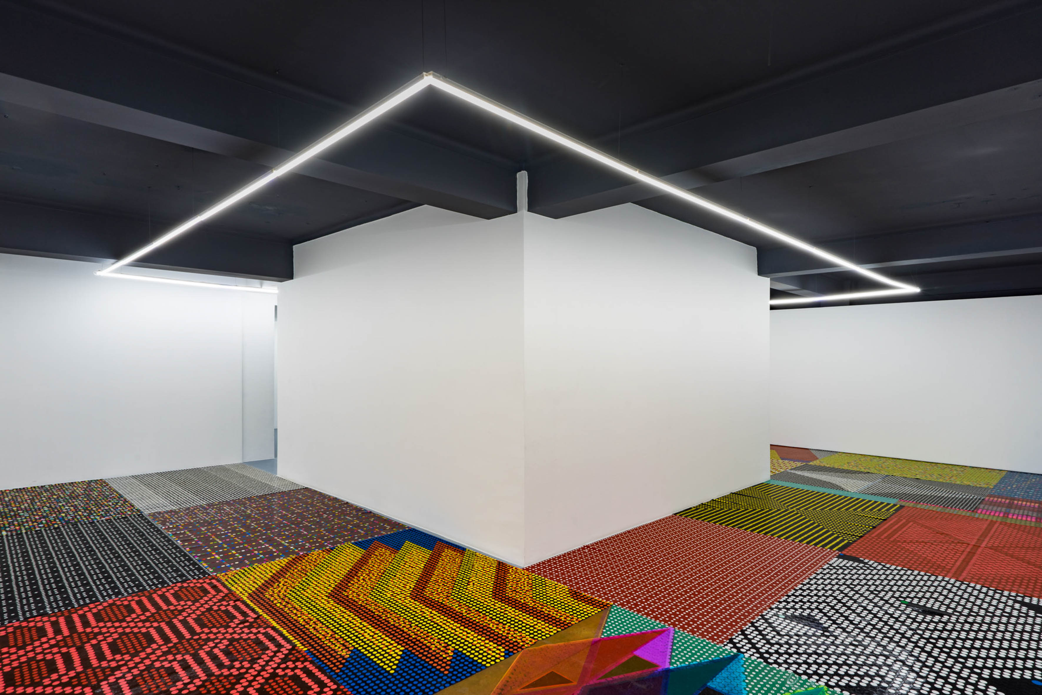 By evoking the architecture of the buildings surrounding the gallery, the artist resorts, once more, to the housing models of Le Corbusier to address recurrent themes in his work. Such as utopia and dystopia in modern architecture, the concept of periphery and deterritorialization and cultural westernization in the age of artificial intelligence.